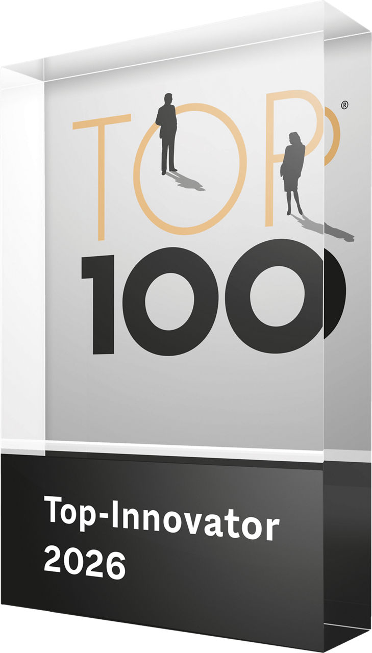 Wir zählen zu den innovativsten Mittelständlern Deutschlands. Als TOP 100-Innovator 2026 haben wir ein wissenschaftlich fundiertes Auswahlverfahren mit über 100 Prüfkriterien erfolgreich durchlaufen - in den Bereichen Innovationskultur, Prozesse, Führung und Markterfolg.